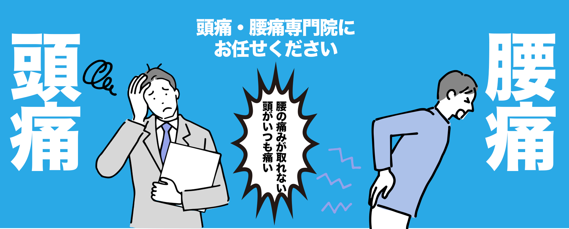 ⽇本人の多くの人が抱える頭痛・腰痛の症状。この症状を改善するためにも、当院は頭痛・腰痛の専⾨院として誕生しました!